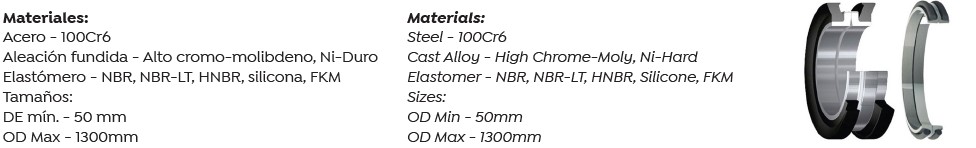Las juntas frontales mecánicas están diseñadas específicamente para aplicaciones giratorias en entornos extremadamente duros, donde soportan un desgaste intenso y evitan la entrada de medios externos abrasivos y agresivos. Las juntas frontales mecánicas también se conocen como juntas de alta resistencia, juntas frontales, juntas de por vida, juntas flotantes, juntas cónicas dobles, juntas tóricas , Mechanische Laufwerkdichtungen (alemán), Механични Челни Уплътнения (búlgaro), 机械端面密封件 (chino), Mekaniske aksialtætninger (danés), Mekaaninen otsatiiviste (finés), Joints d’Etanchéité Axiaux (francés),Mechaniczne Uszczelnienie Czołowe (polaco), Juntas espejo (español), Mekaniska Glidringstätningar (sueco).